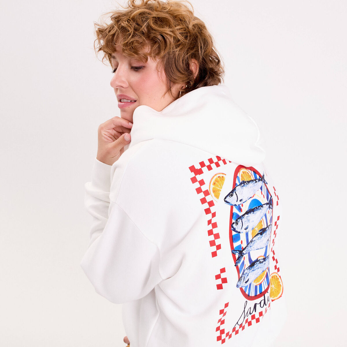 Sweat oversize print dos ecru femme