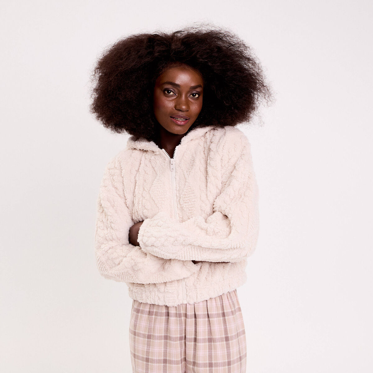 Sweat effet polaire ecru femme