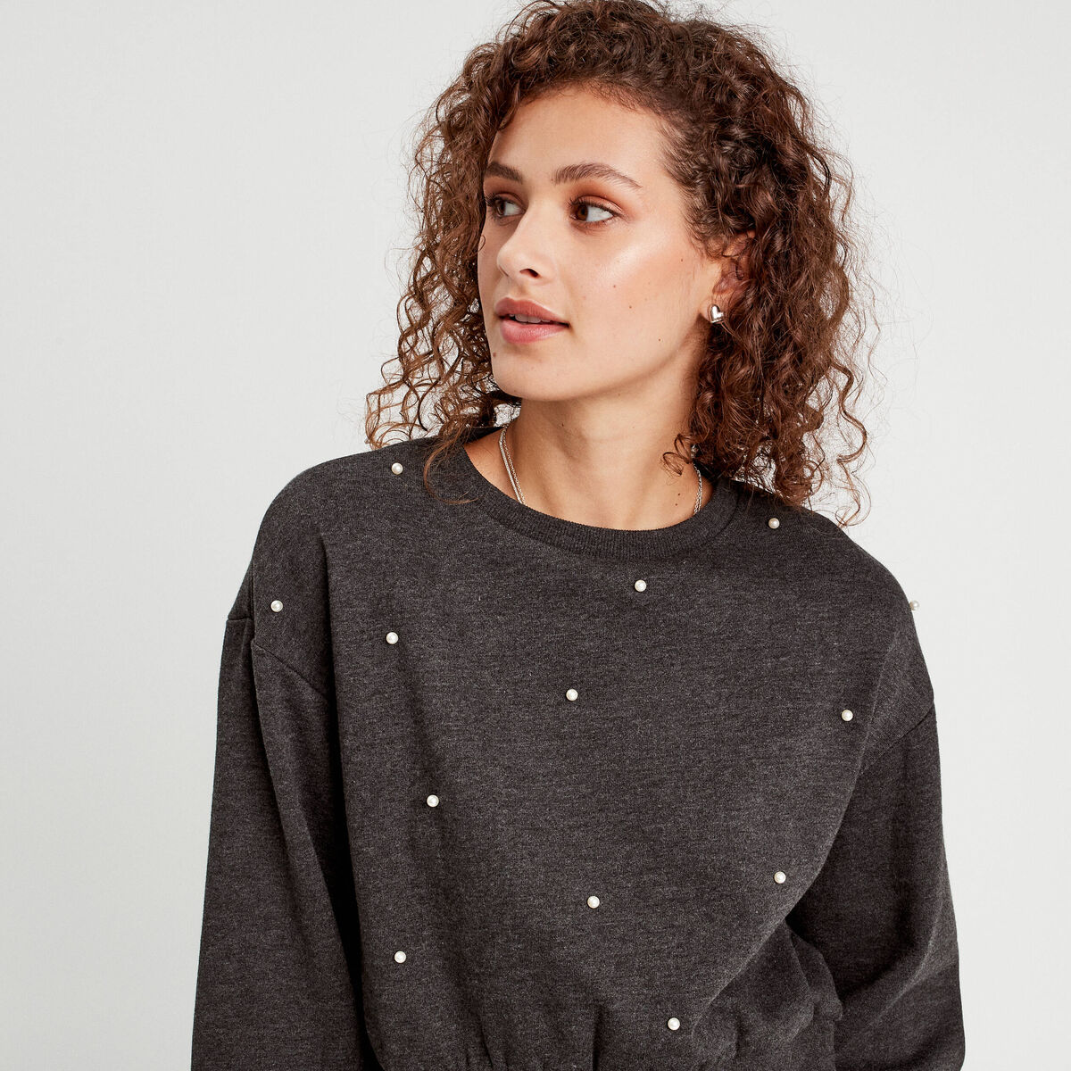 Sweat oversize avec perles gris foncé femme