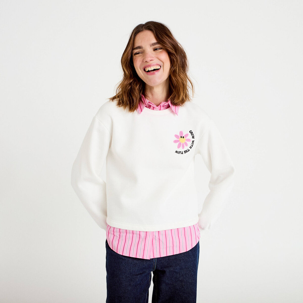 Sweat chemise 2-en-1 ecru femme