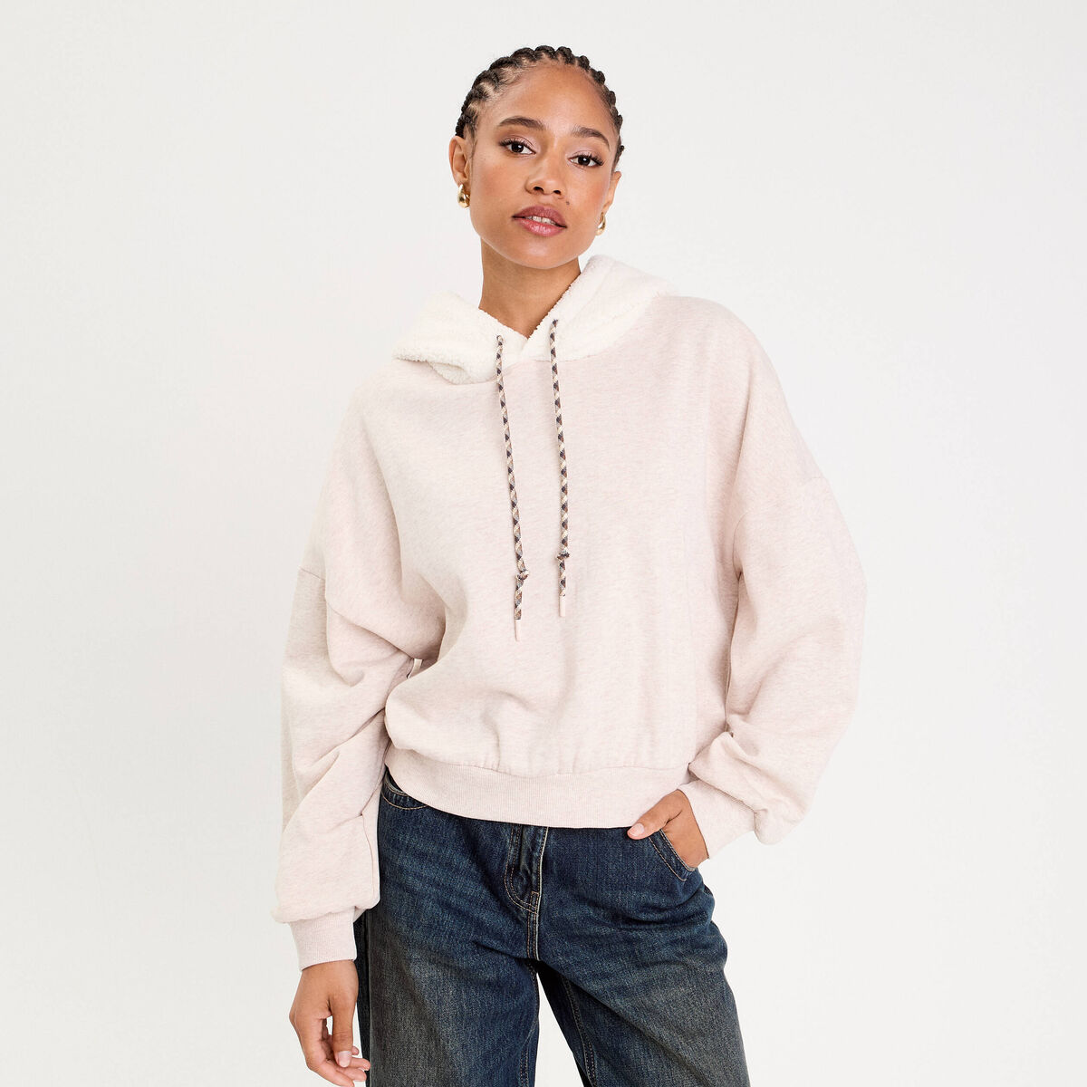 Sweat oversize à capuche ecru femme