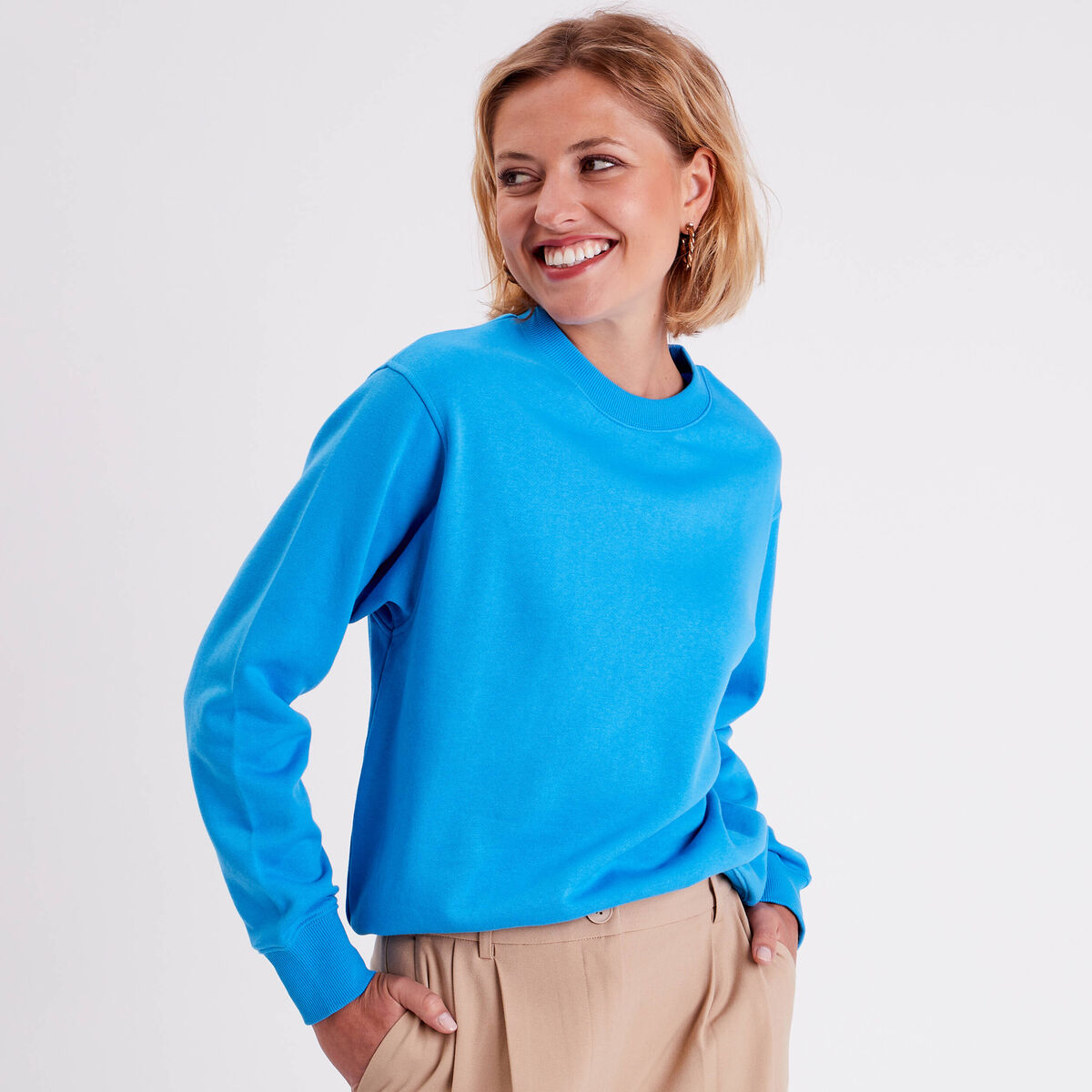 Sweat oversize col rond bleu femme