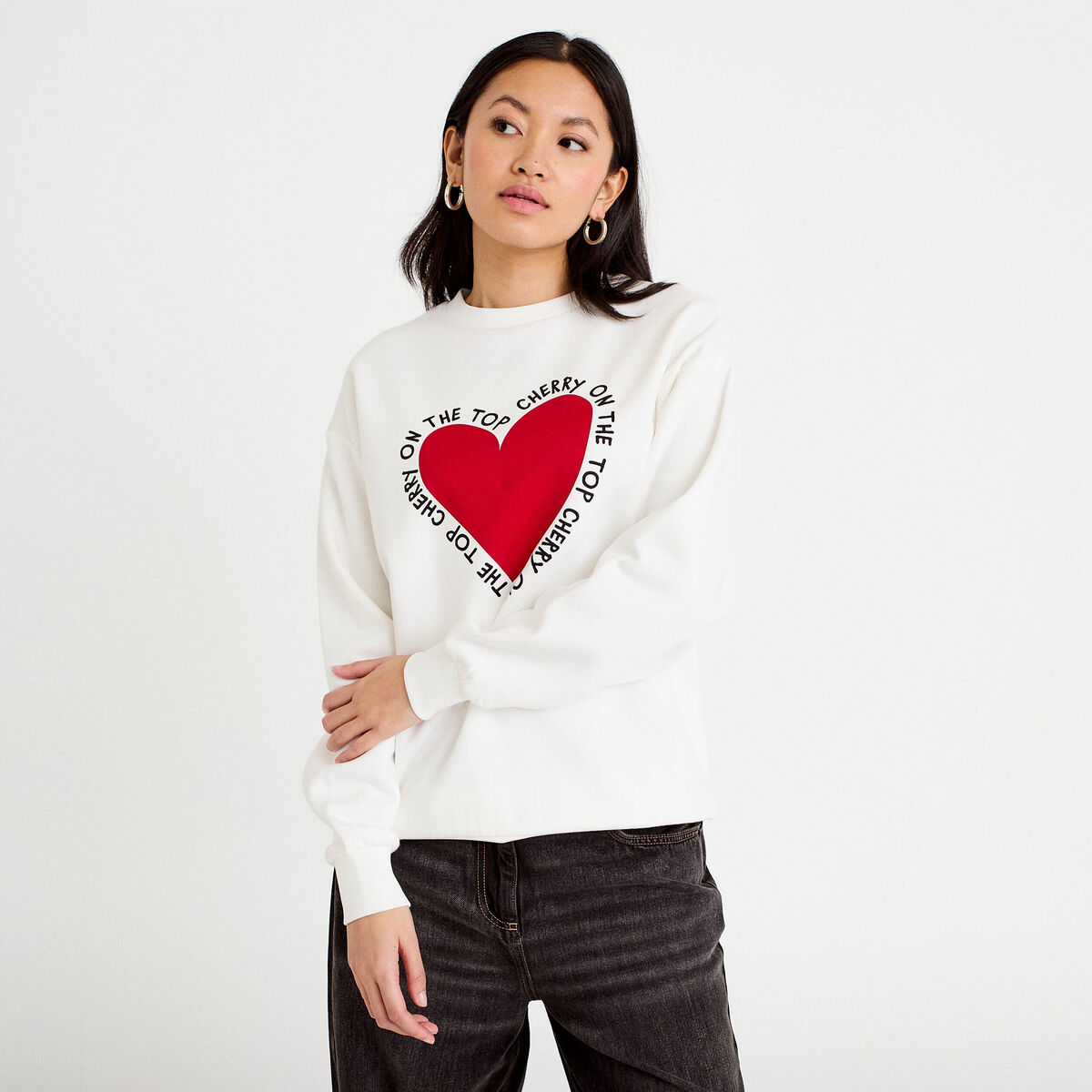 Sweat oversize col rond manches longues ecru femme