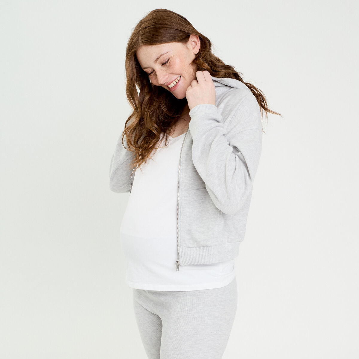 Sweat à capuche manches longues gris clair femme