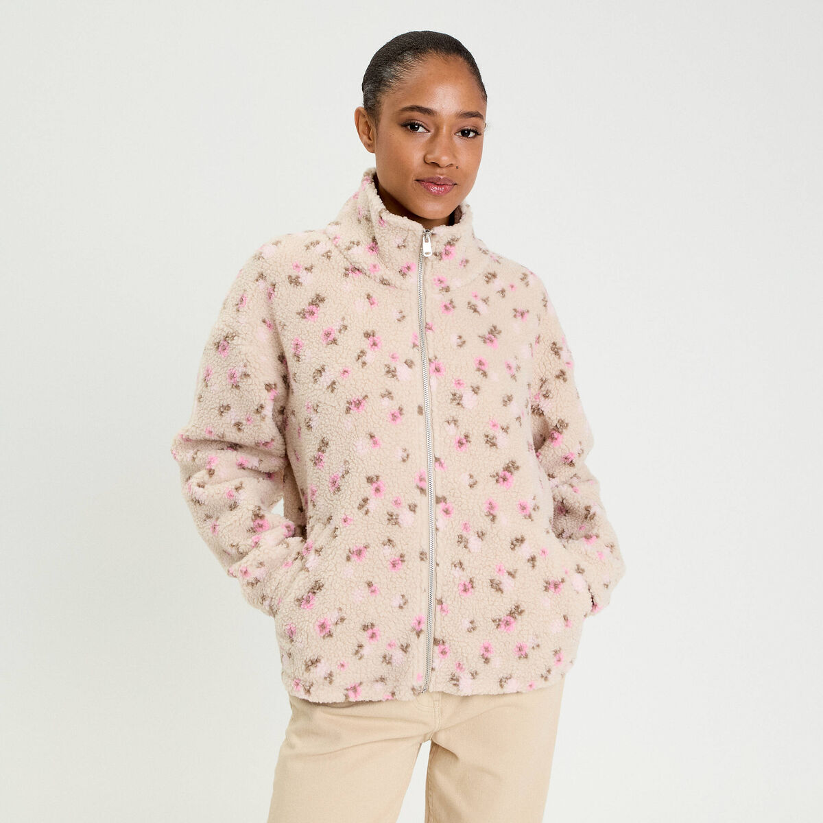 Sweat effet polaire manches longues blanc femme