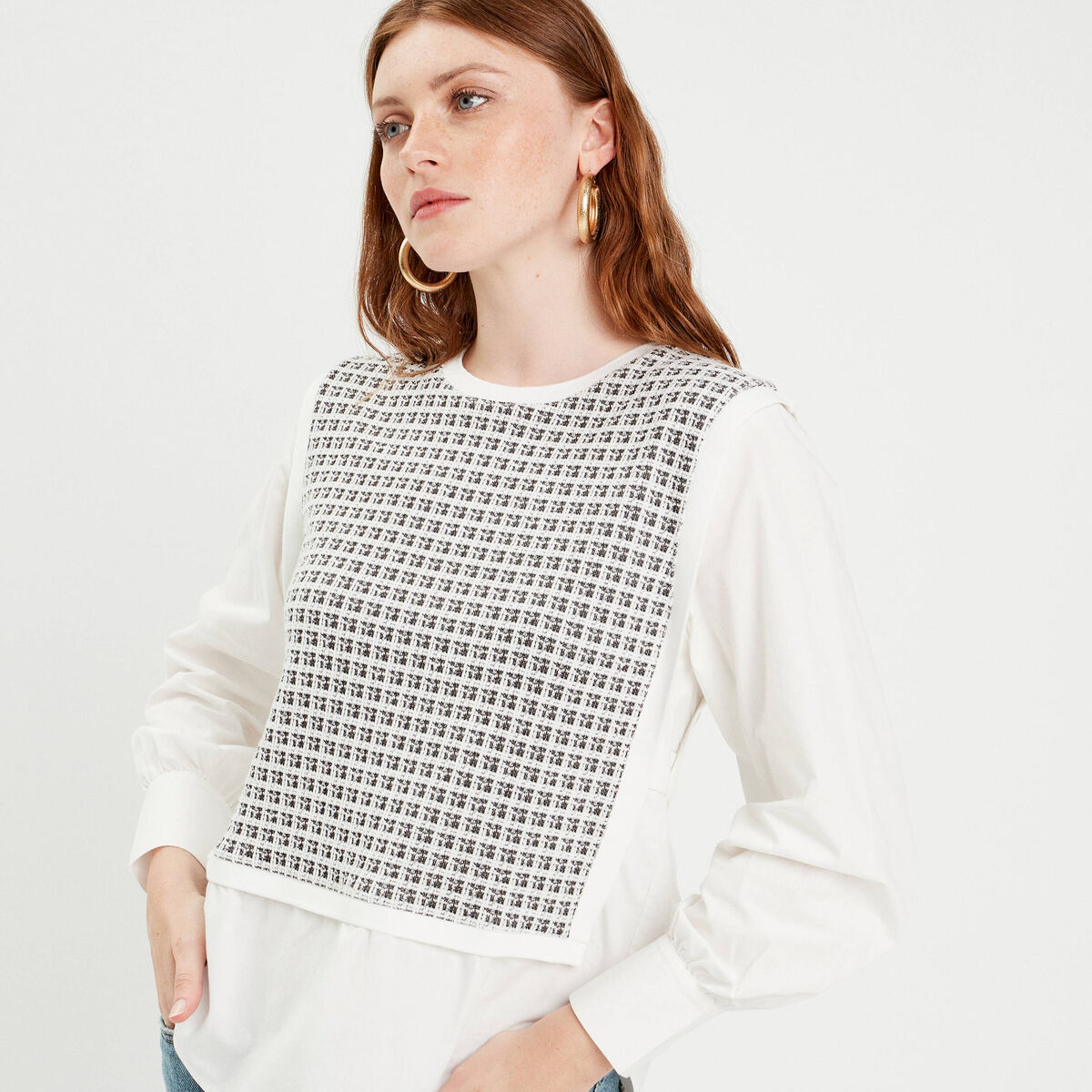 Sweat effet 2-en-1 chemise ecru femme