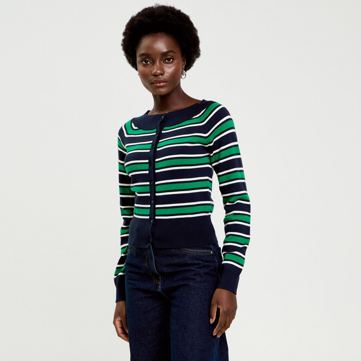 Cardigan manches longues encolure bateau bleu marine femme