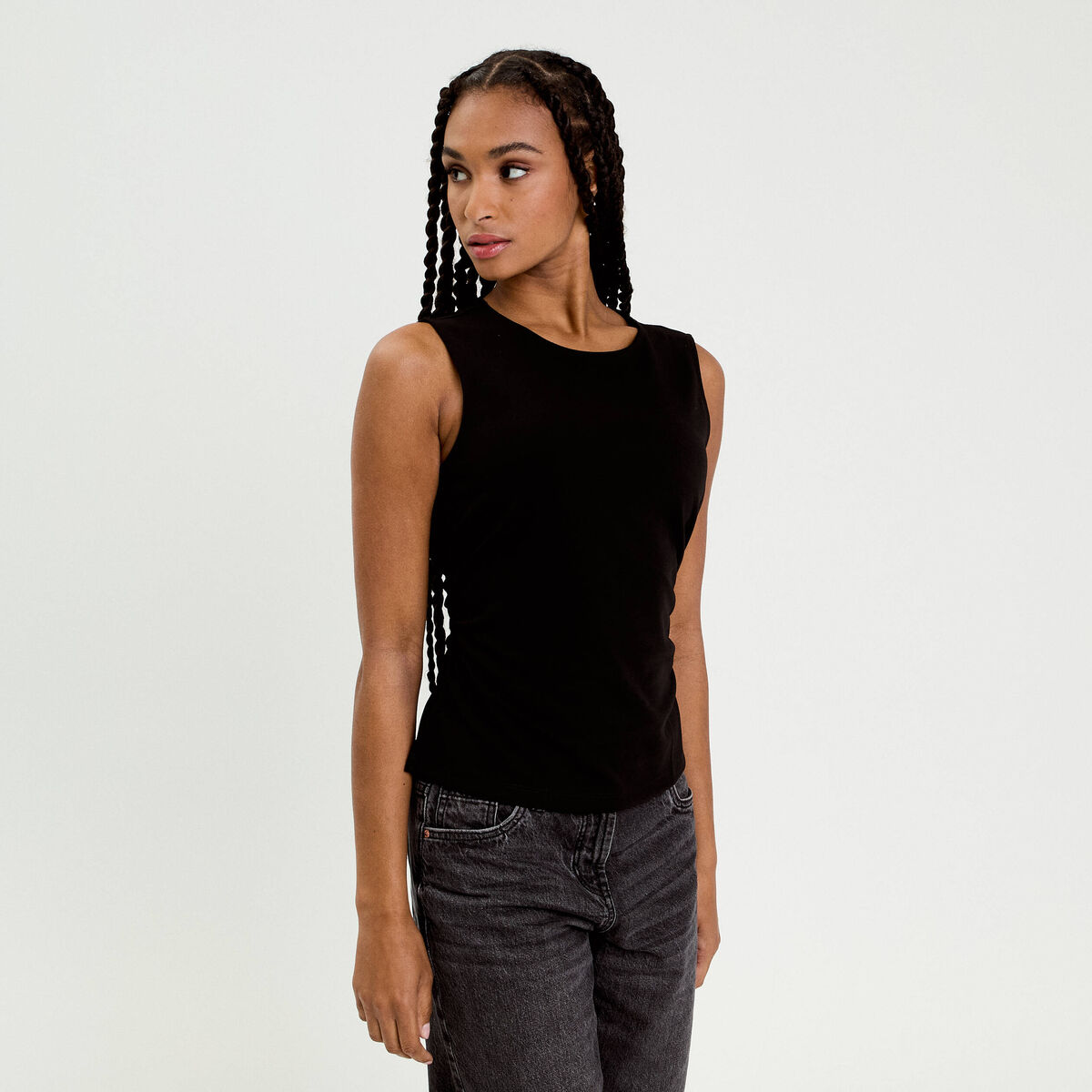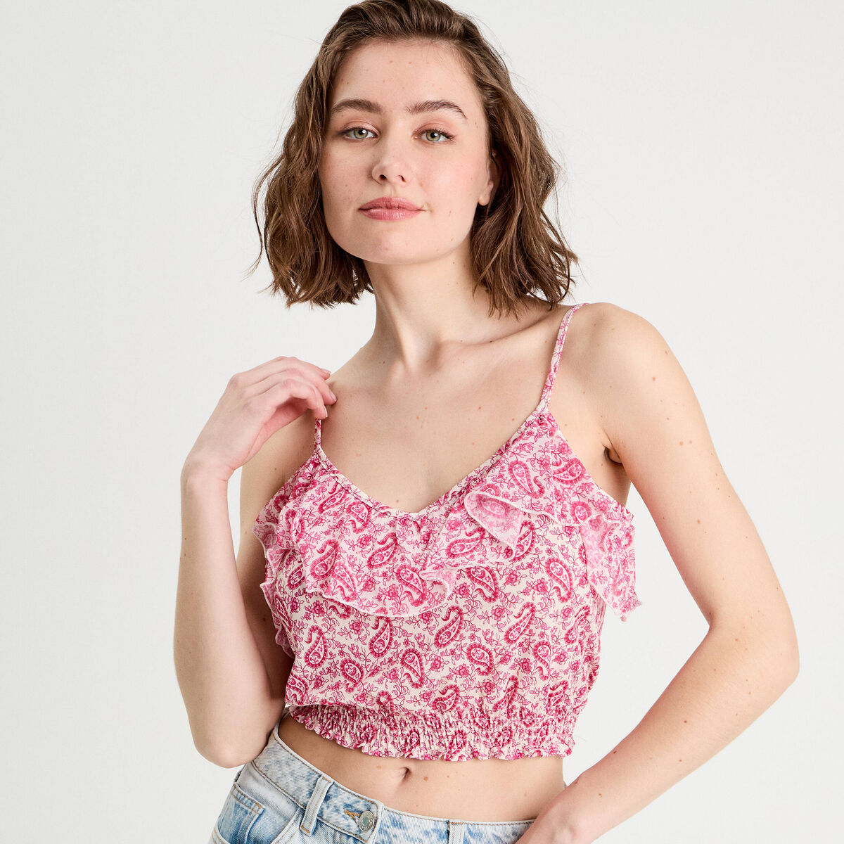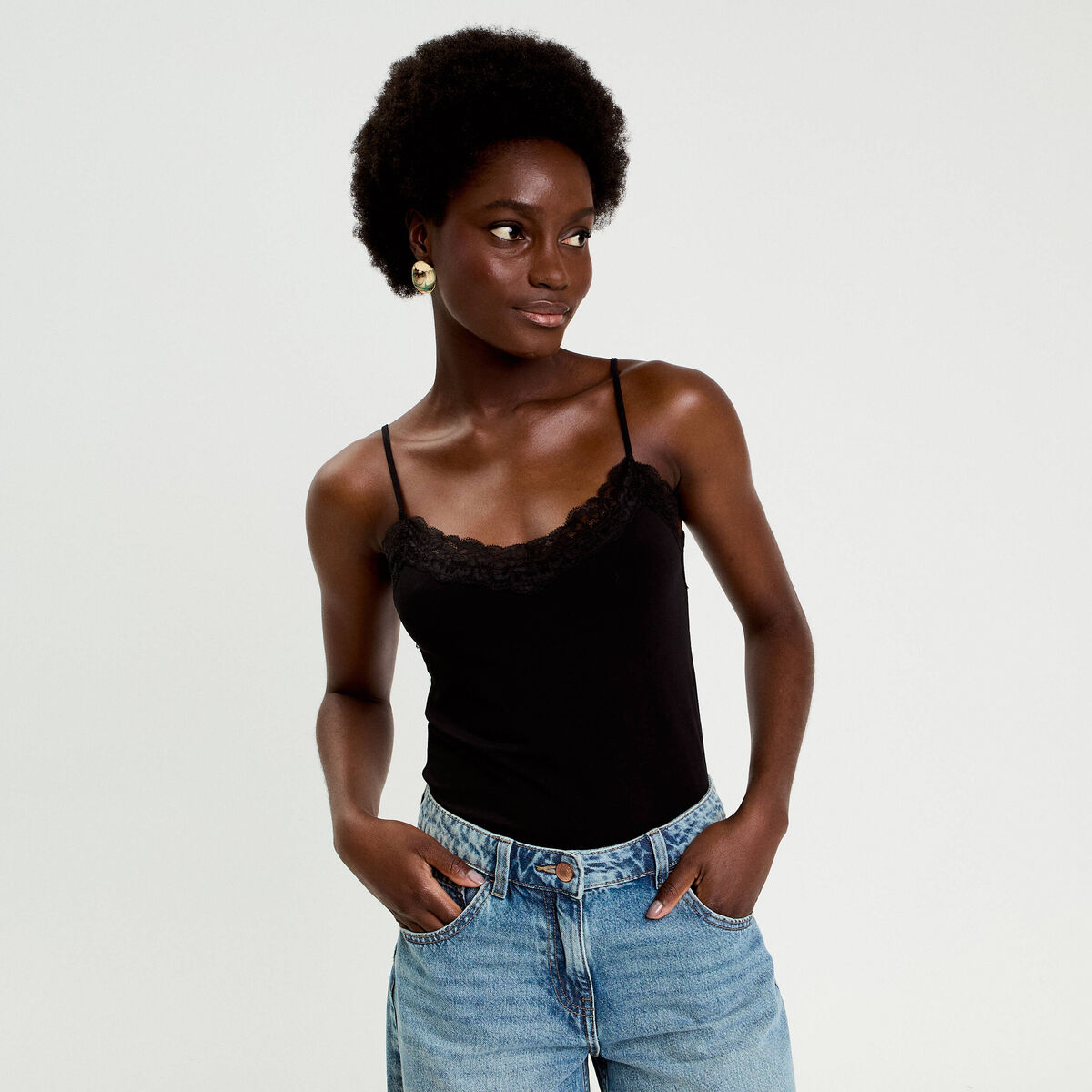 Débardeur col v ajouré aspect dentelle vert menthe femme