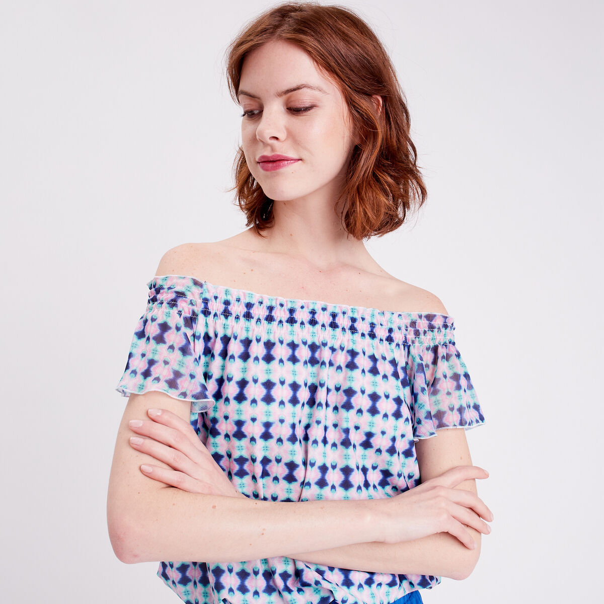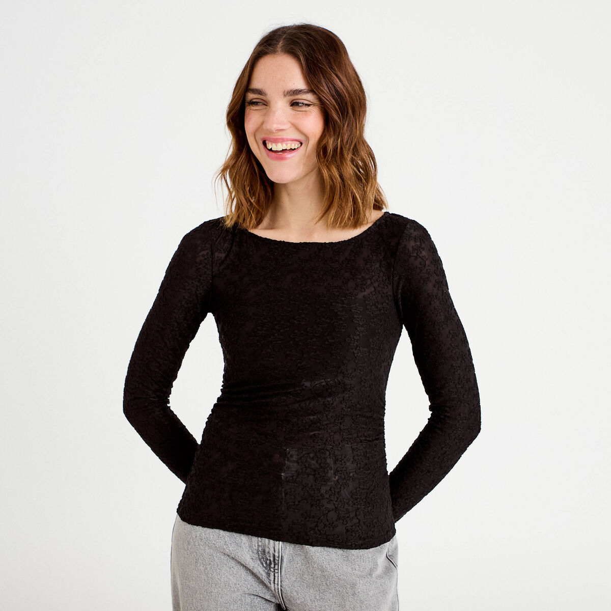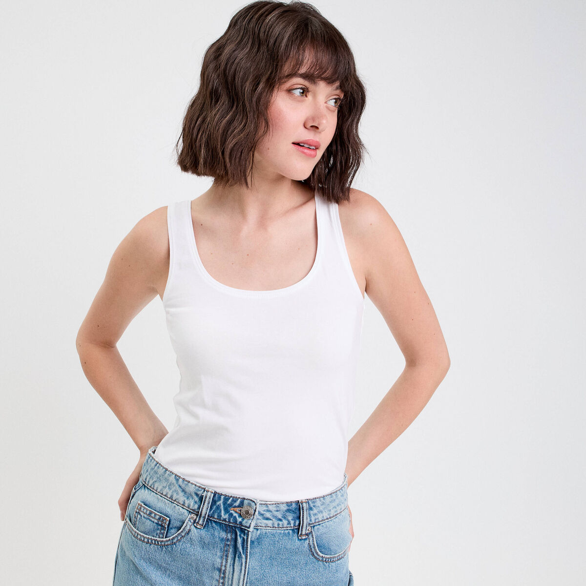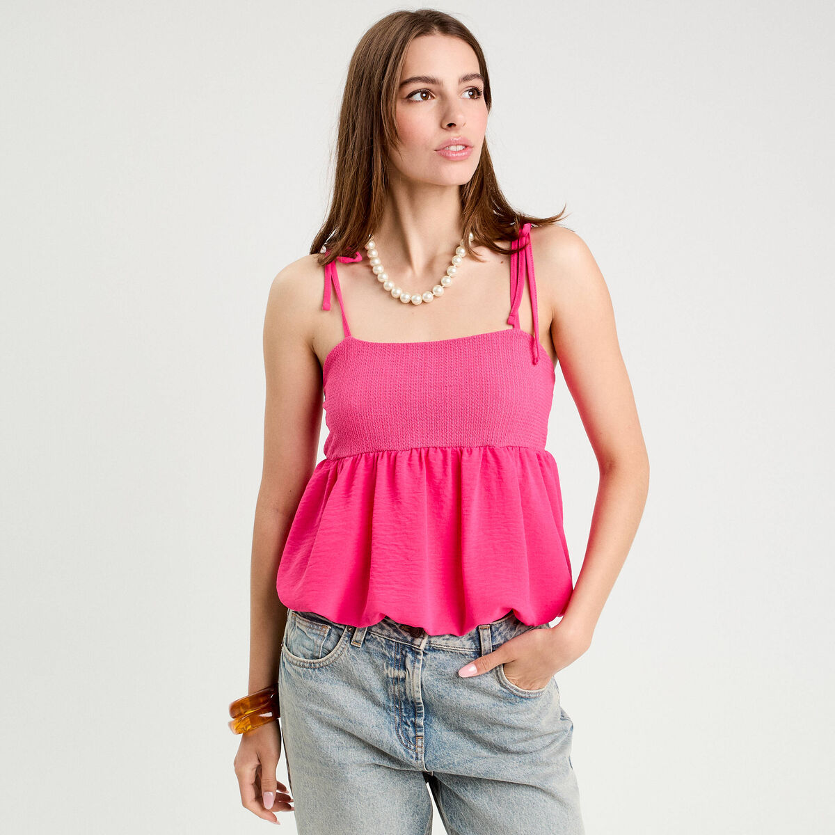 Débardeur col v ajouré aspect dentelle vert menthe femme