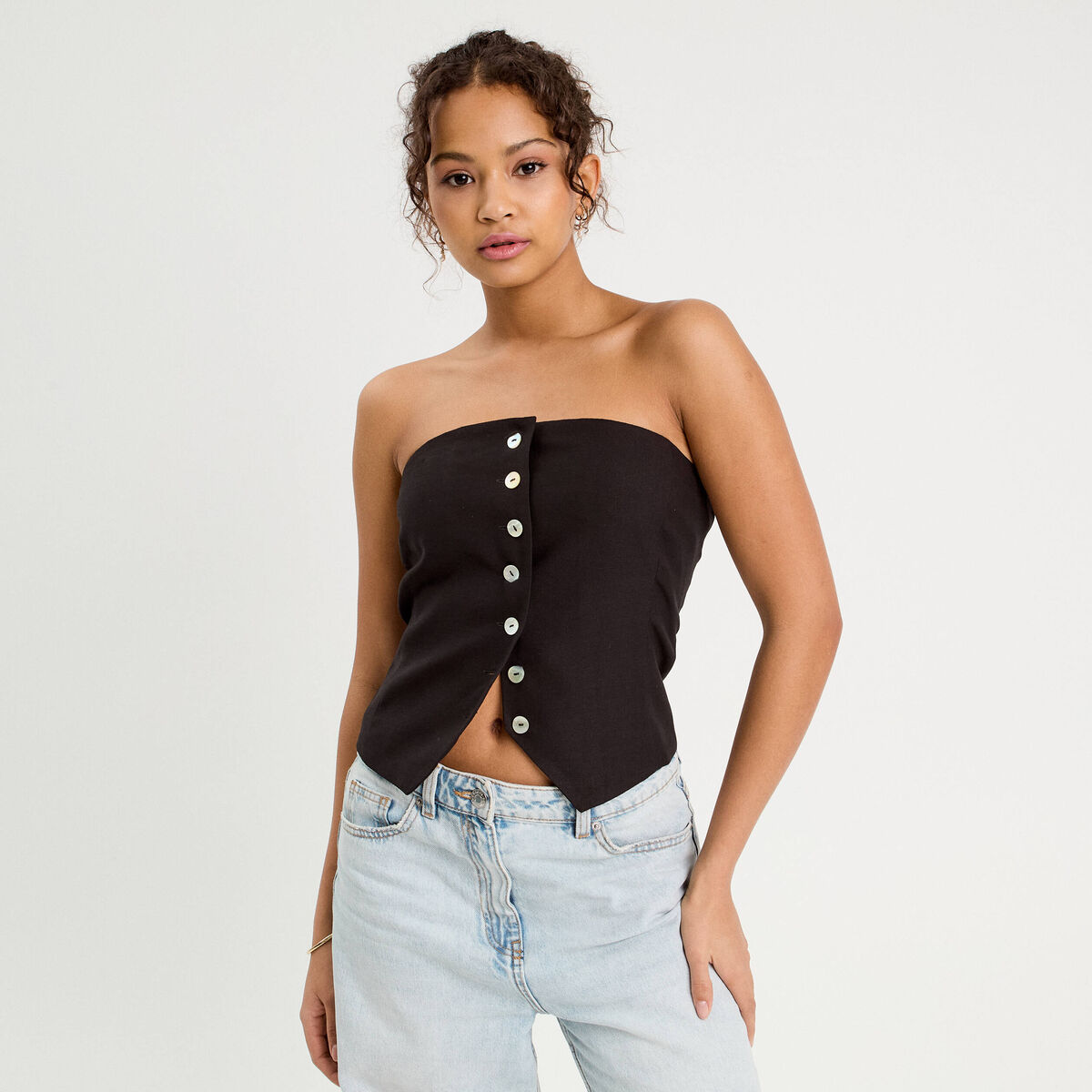 Bustier cintré boutons noir femme