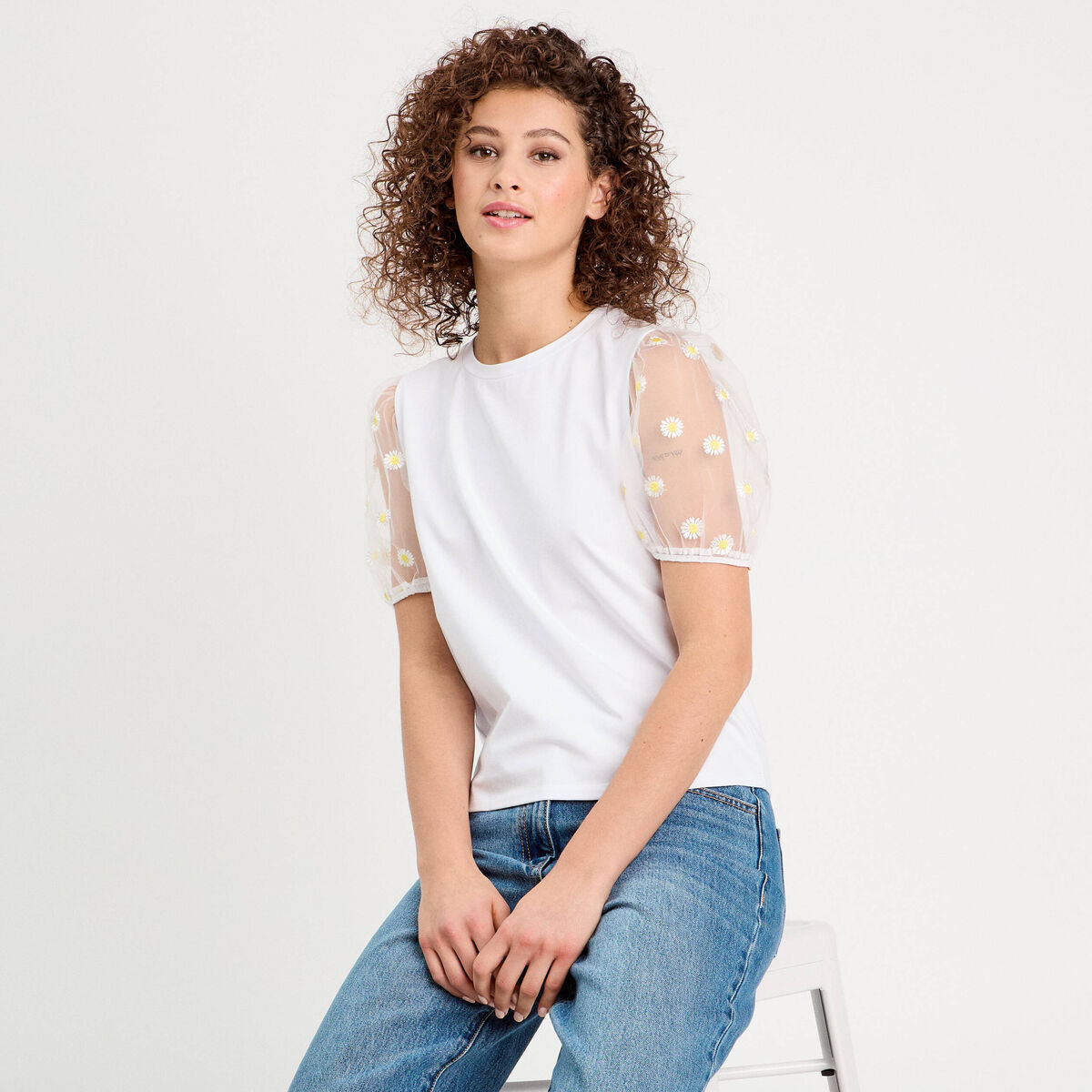 T-shirt manches brodées blanc femme