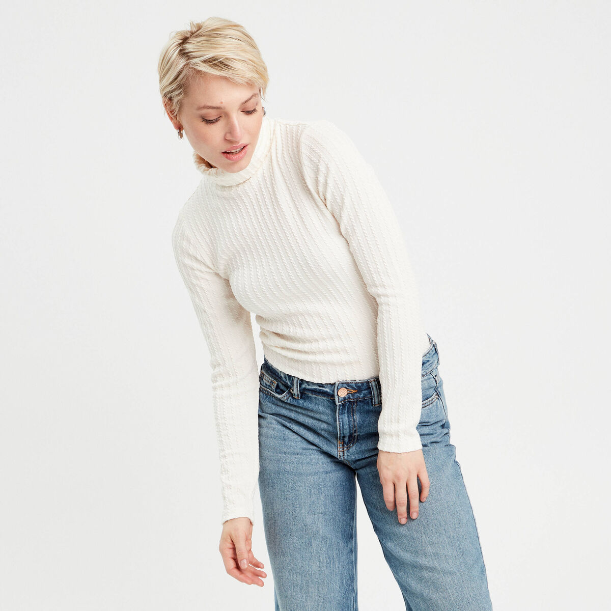 T-shirt col roulé ecru femme