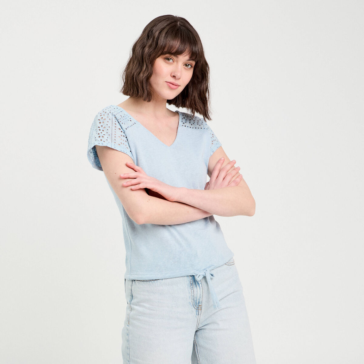 T-shirt manches courtes bleu pastel femme