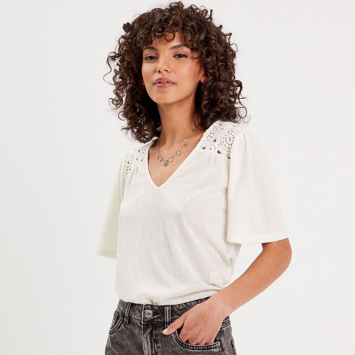 T-shirt manches courtes ecru femme