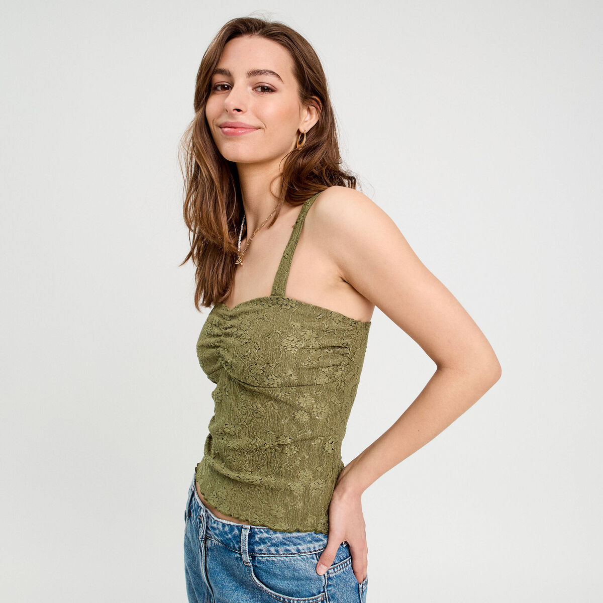 Débardeur bretelles fines vert kaki femme