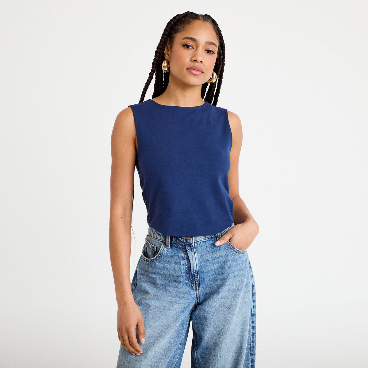 Débardeur cropped bleu foncé femme