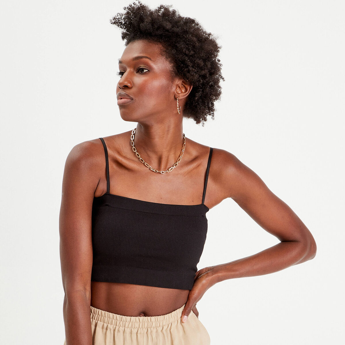 Bustier cropped bretelles noir femme