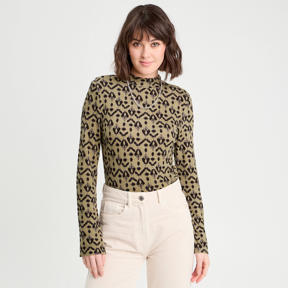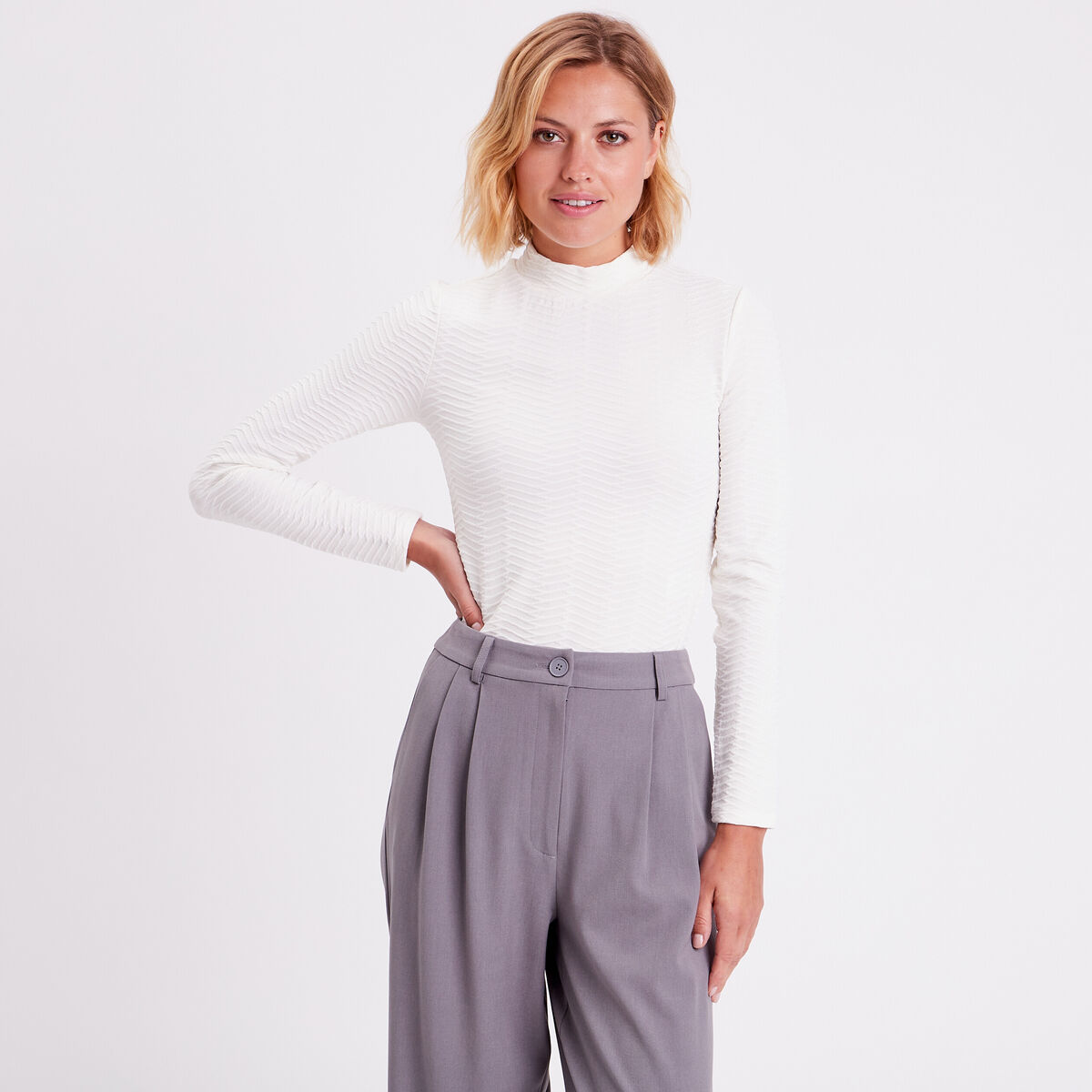 T-shirt col montant ecru femme