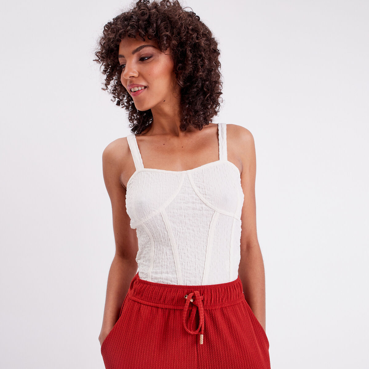 Débardeur bustier gauffré ecru femme