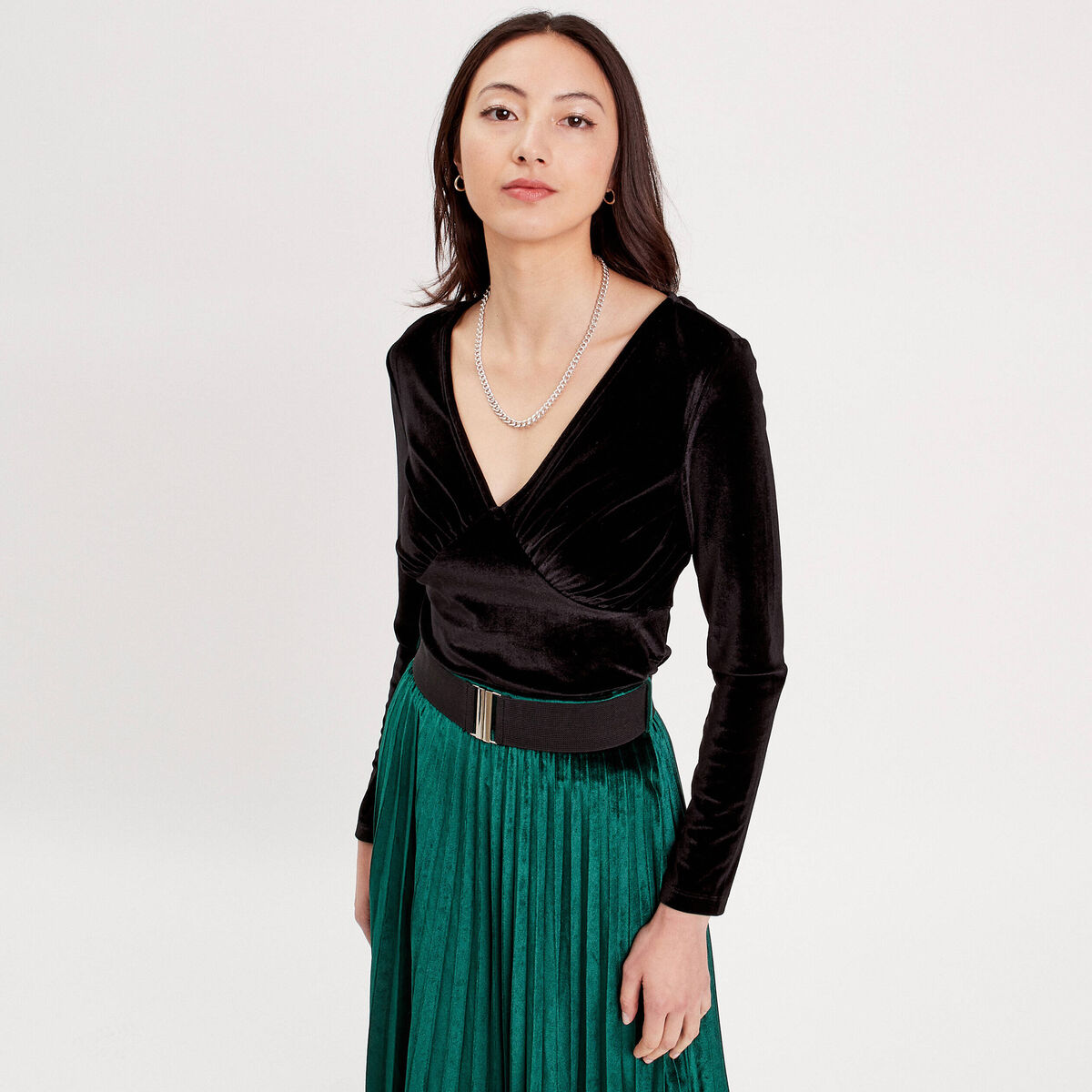 T-shirt velours cintré noir femme