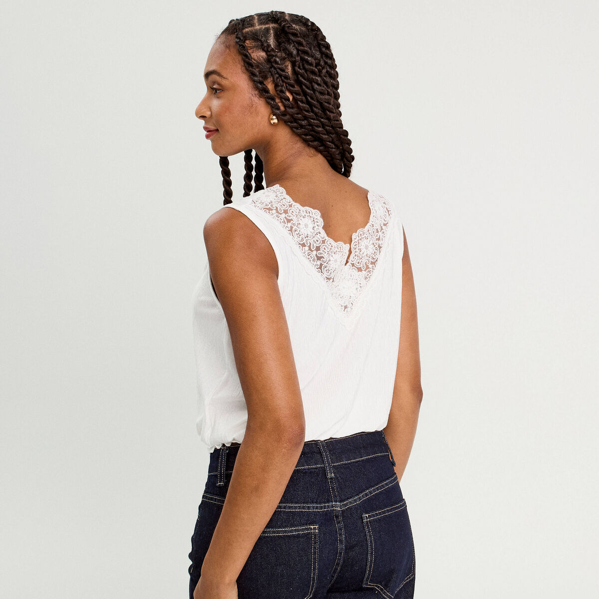 Débardeur broderie anglaise ecru femme