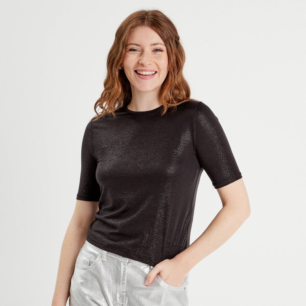 T-shirt paillettes noir femme