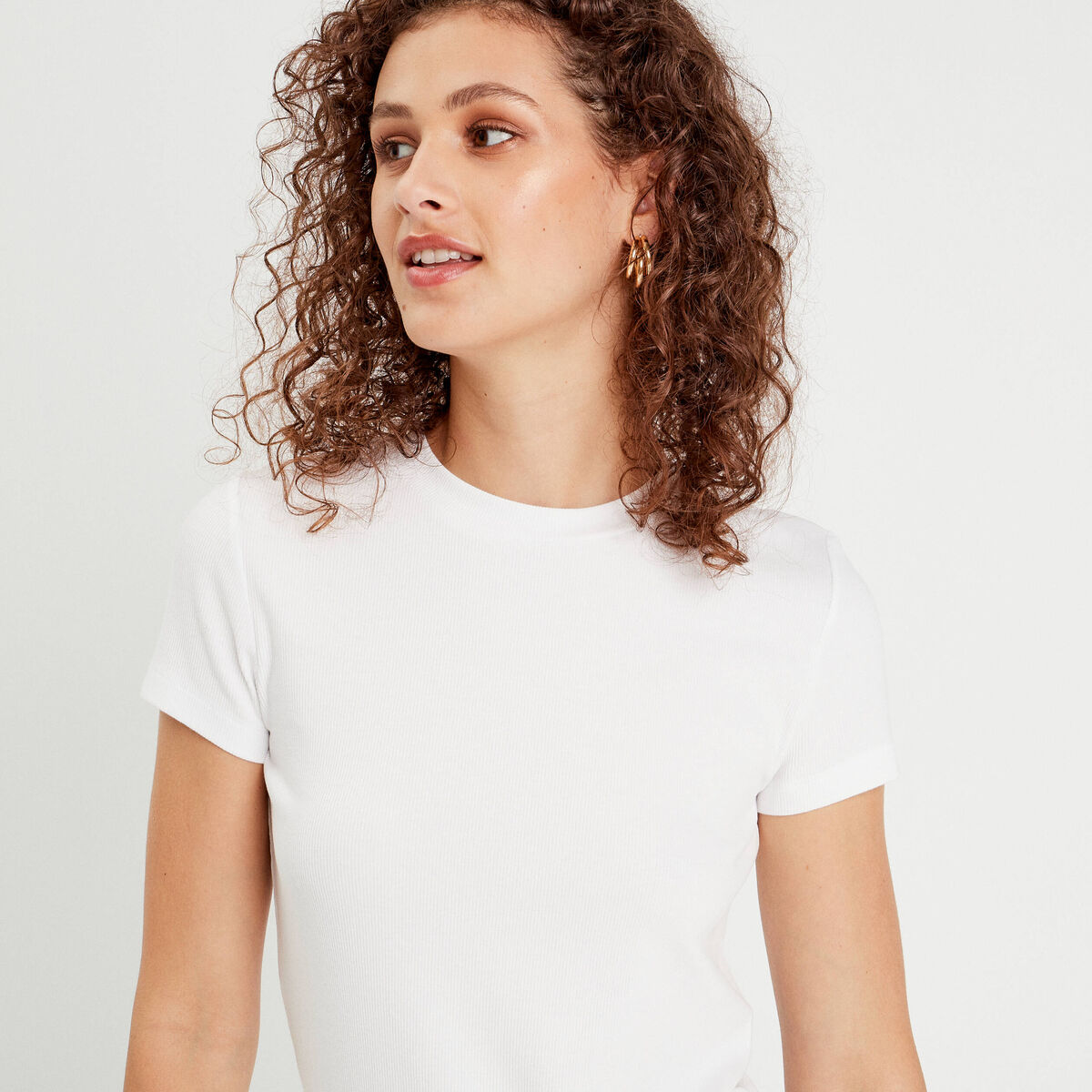 T-shirt manches courtes côtelé blanc femme