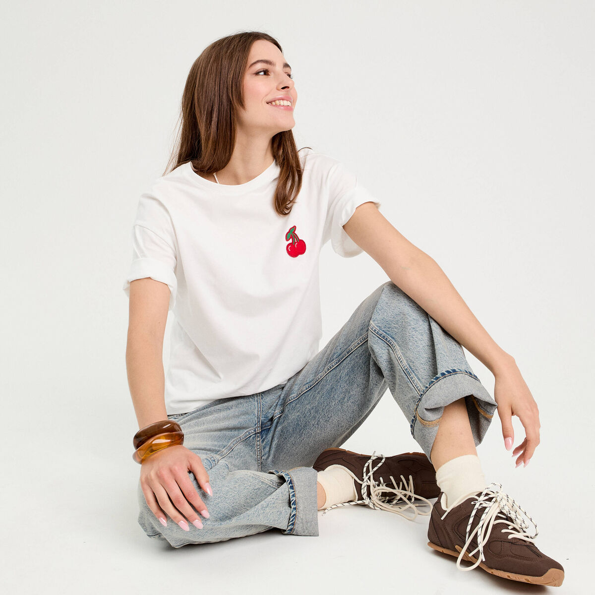 T-shirt oversize long manches courtes ecru femme