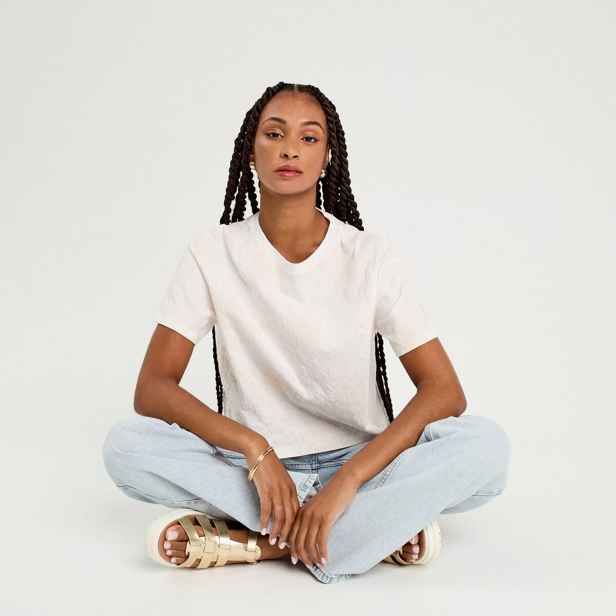 T-shirt manches courtes ecru femme