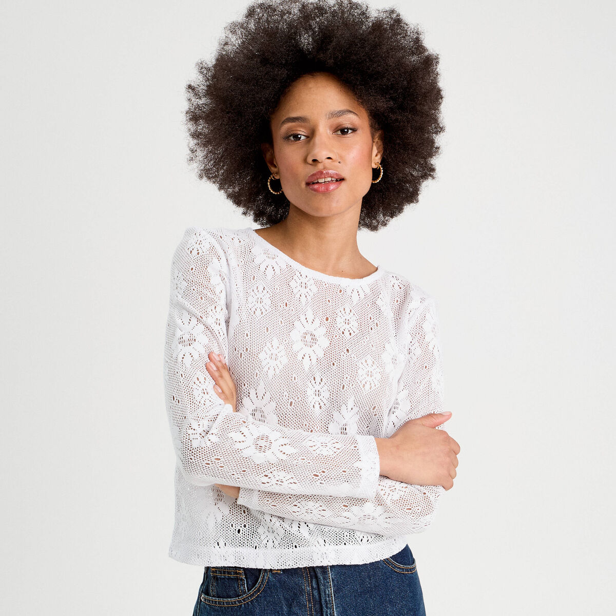T-shirt ajouré effet crochet blanc femme