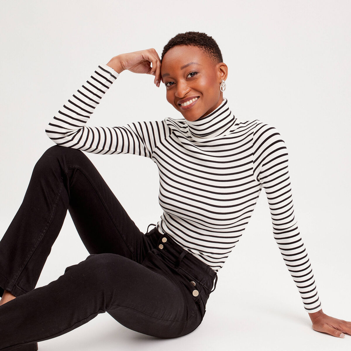 T-shirt col roulé blanc femme