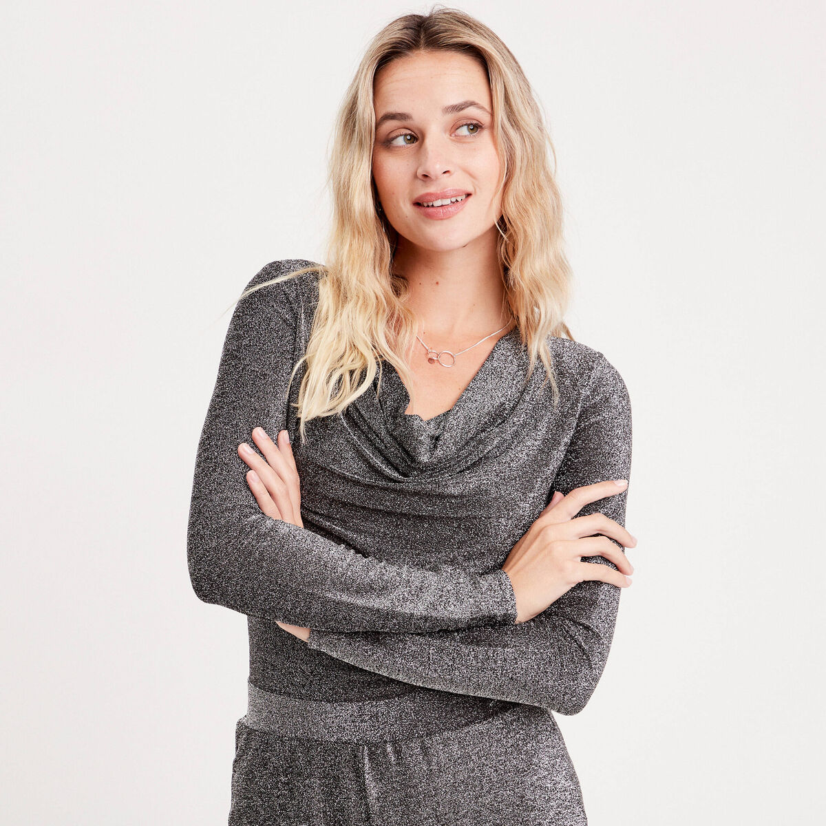Body manches longues gris argent femme