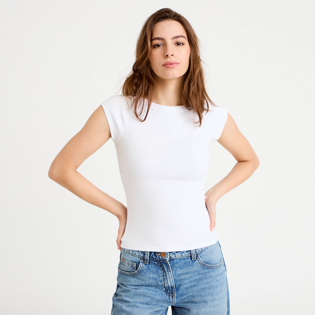 T-shirt côtelé ajusté blanc femme