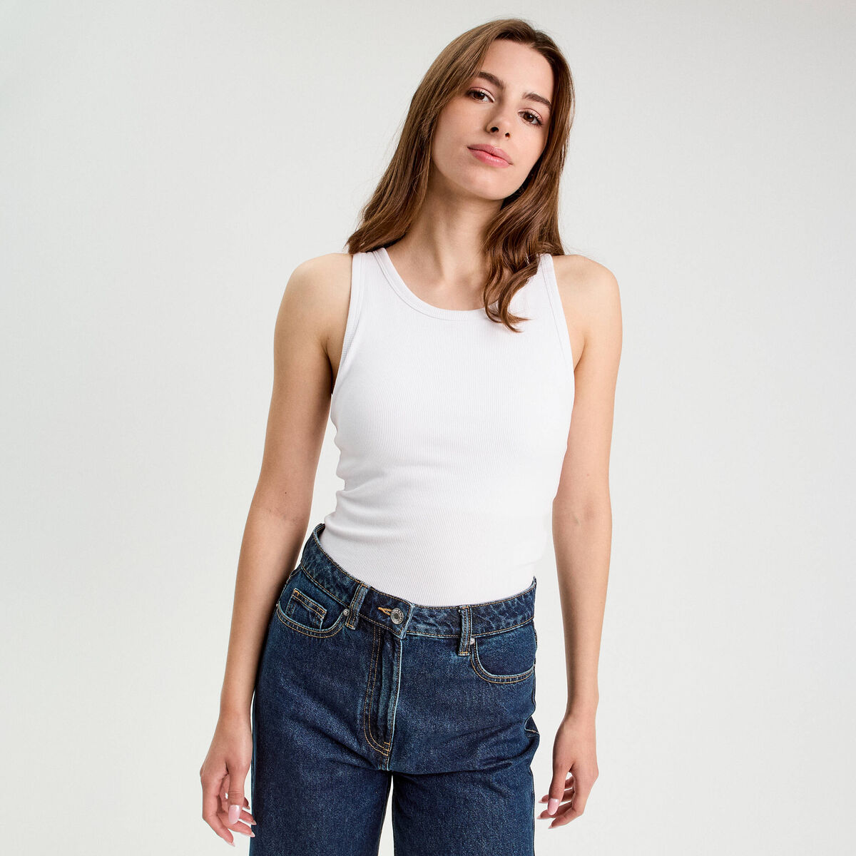 Débardeur côtelé blanc femme