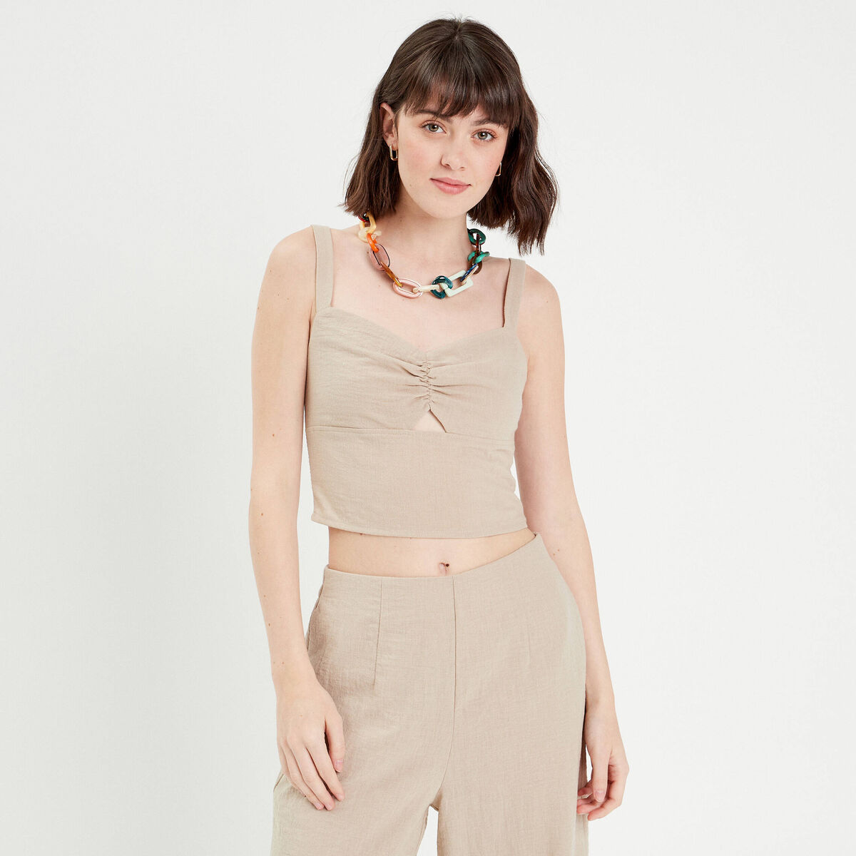 Bustier bretelles fines beige femme