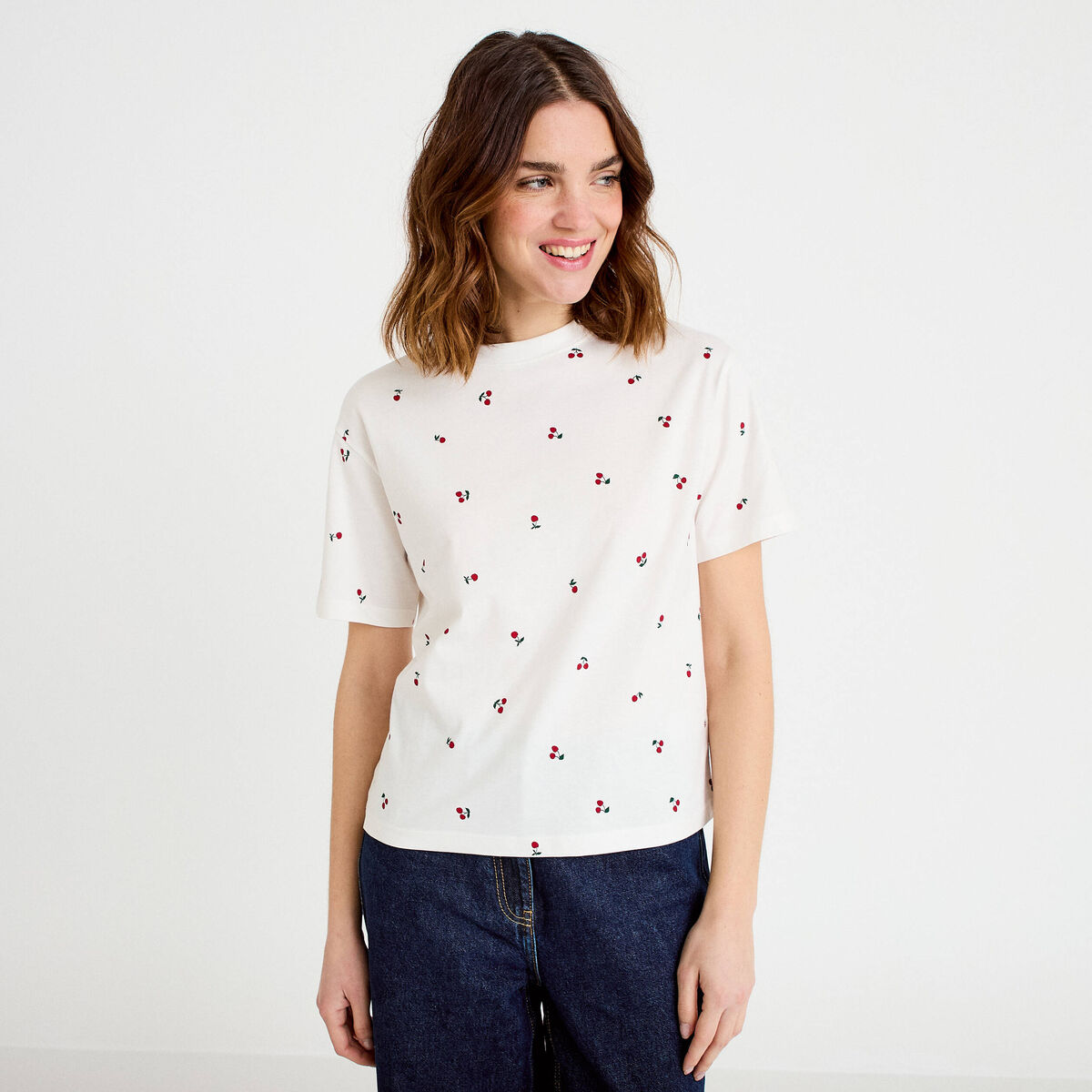 T-shirt oversize manches courtes ecru femme