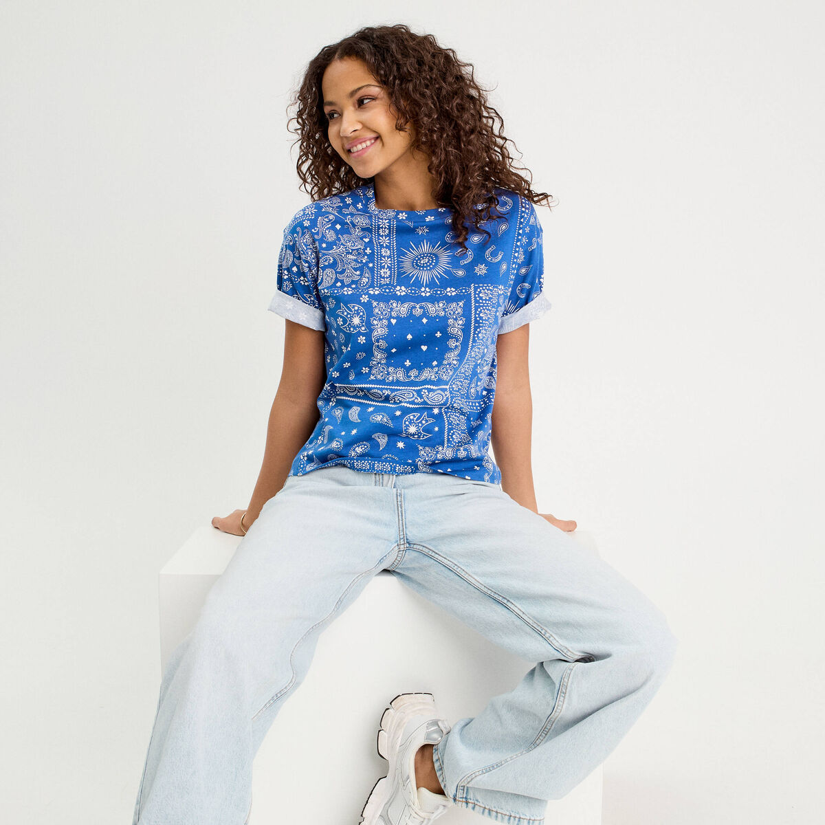 T-shirt manches courtes bleu femme