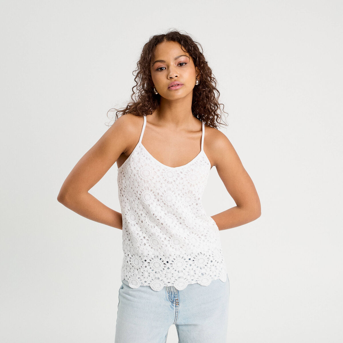 Débardeur effet crochet blanc femme
