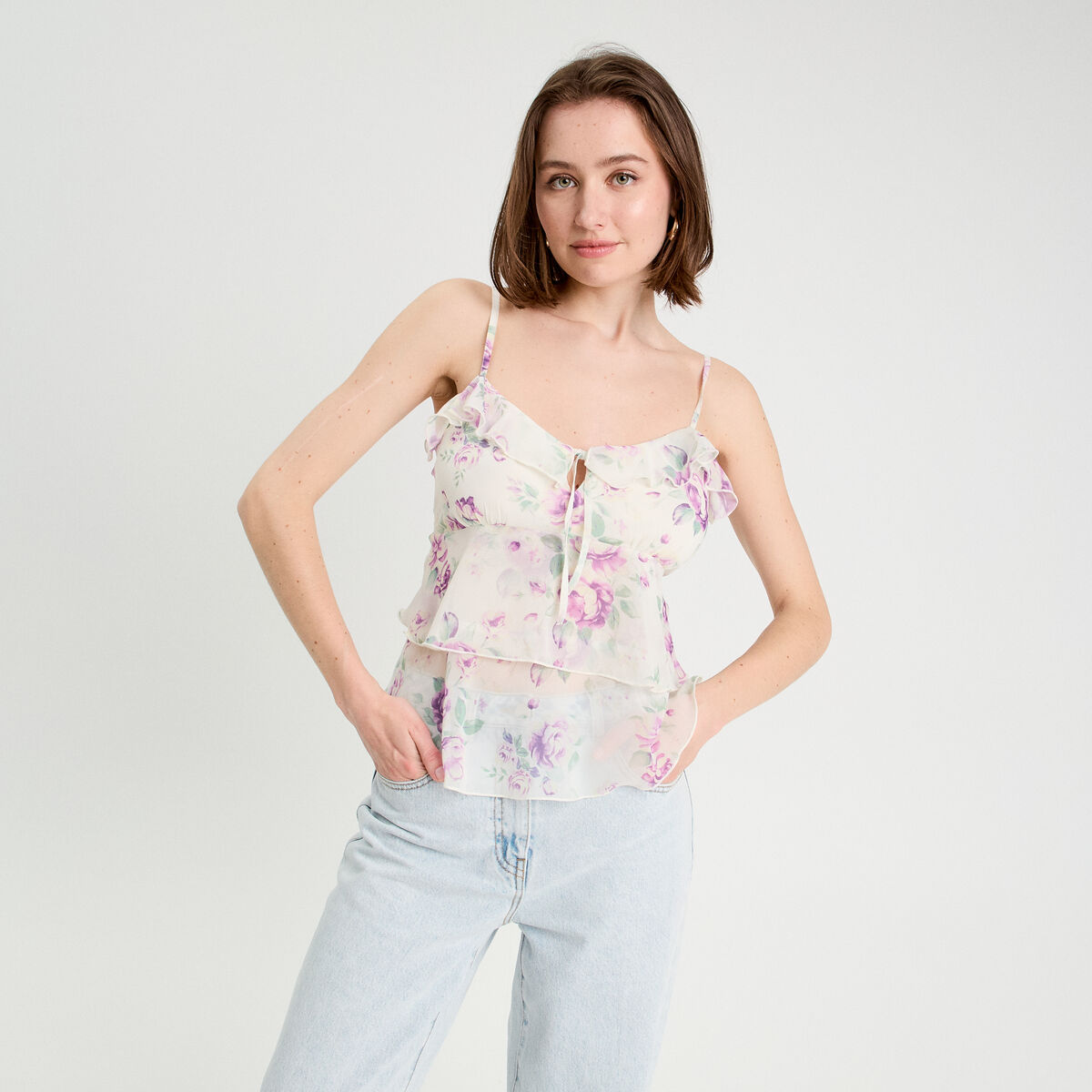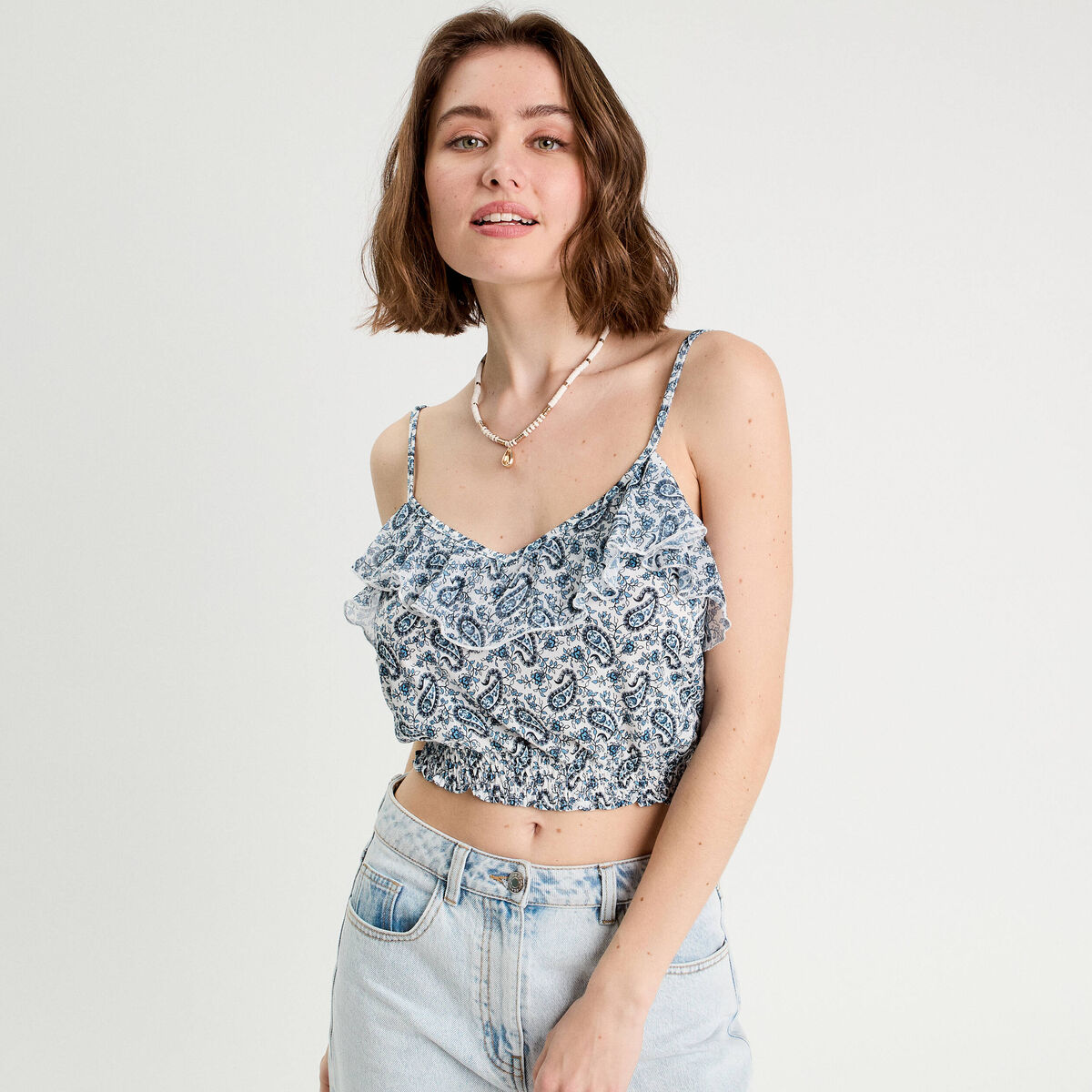 Débardeur cropped volants bleu femme