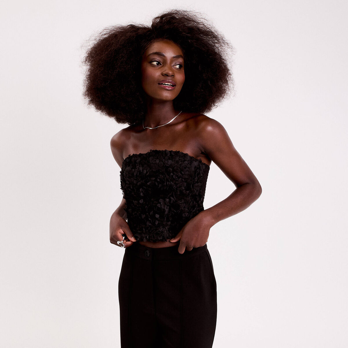 Bustier cropped fleurs en relief noir femme