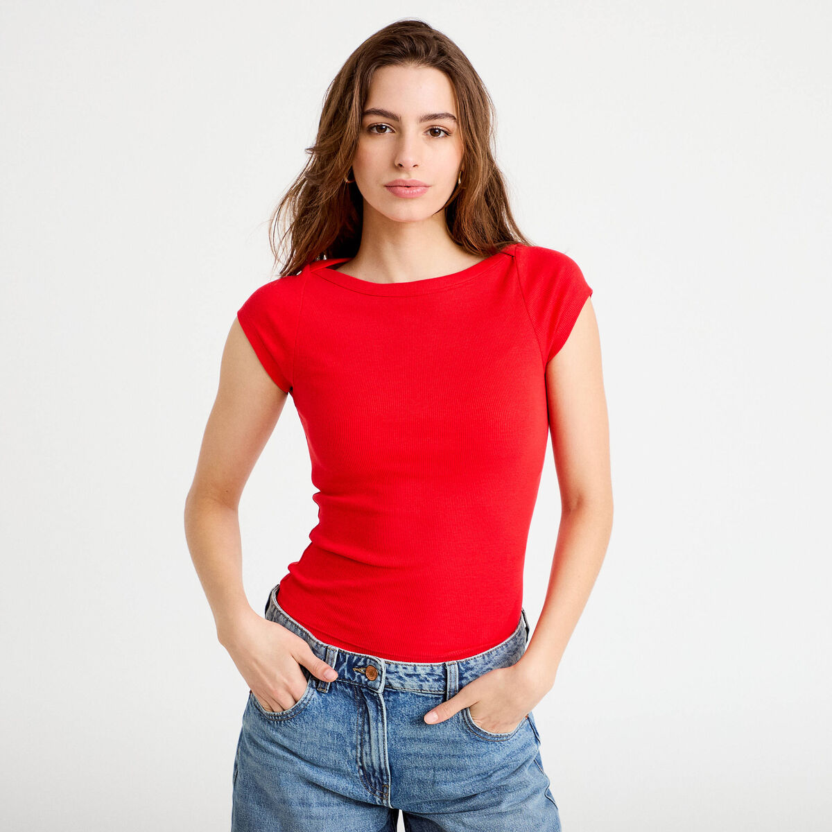 T-shirt cintré manches courtes rouge femme