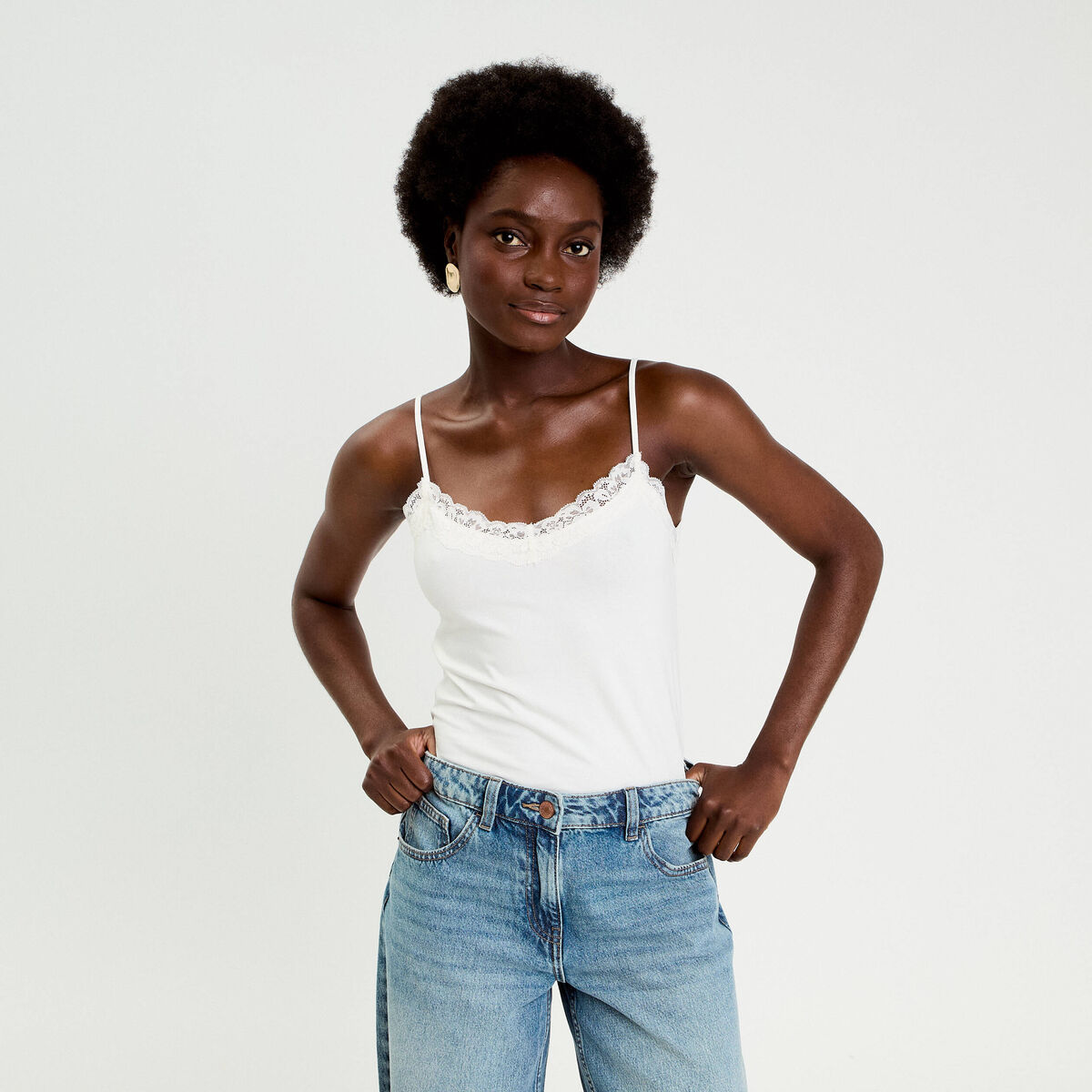 Débardeur ajusté décolleté dentelle ecru femme