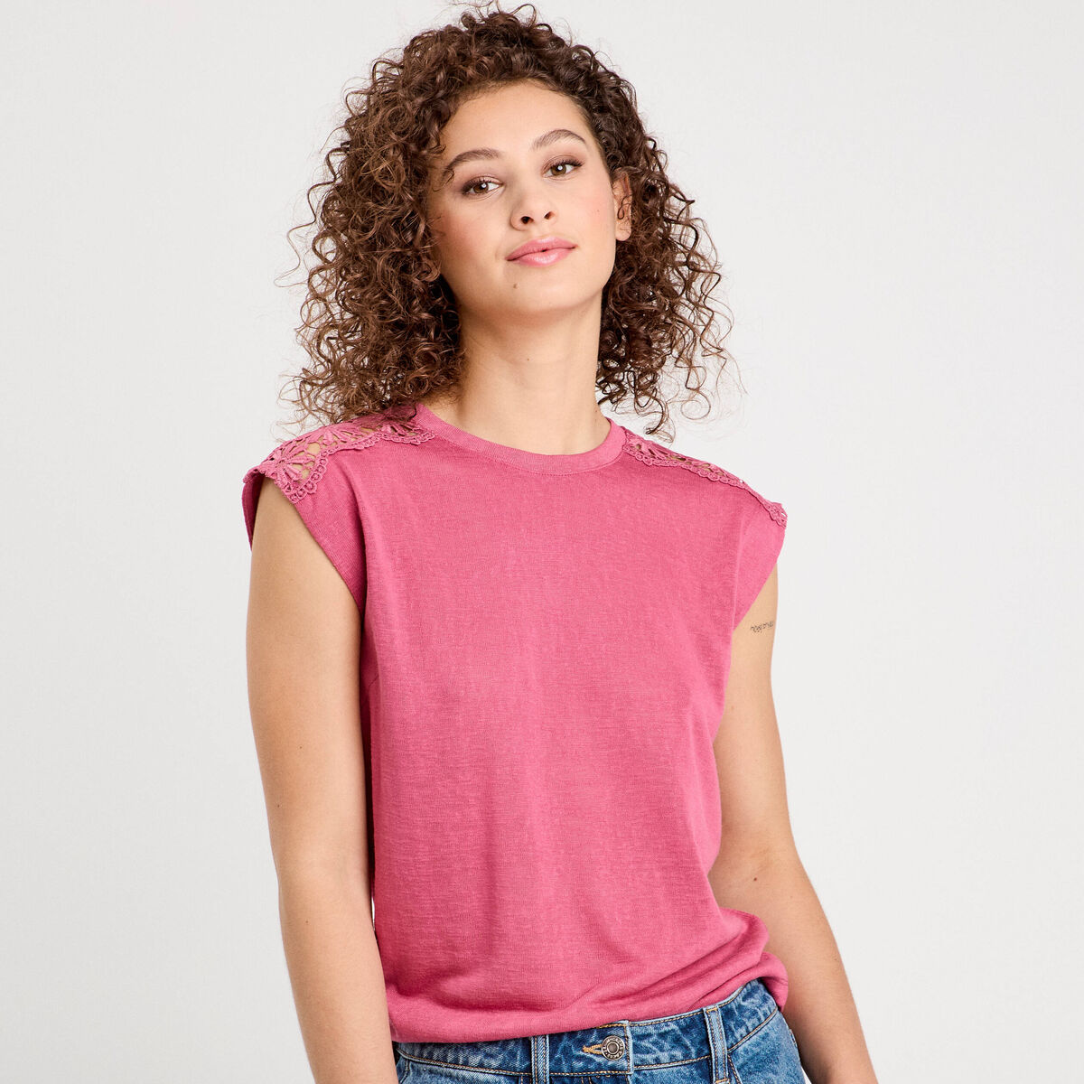 Débardeur épaules dentelle rose clair femme