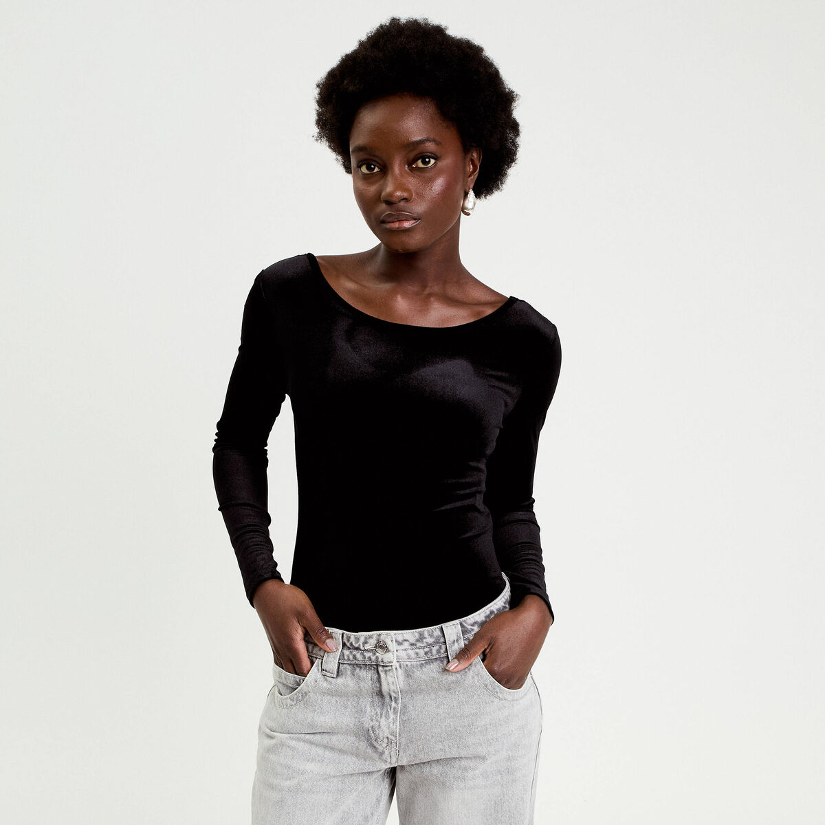Body en velours décolleté dos noir femme
