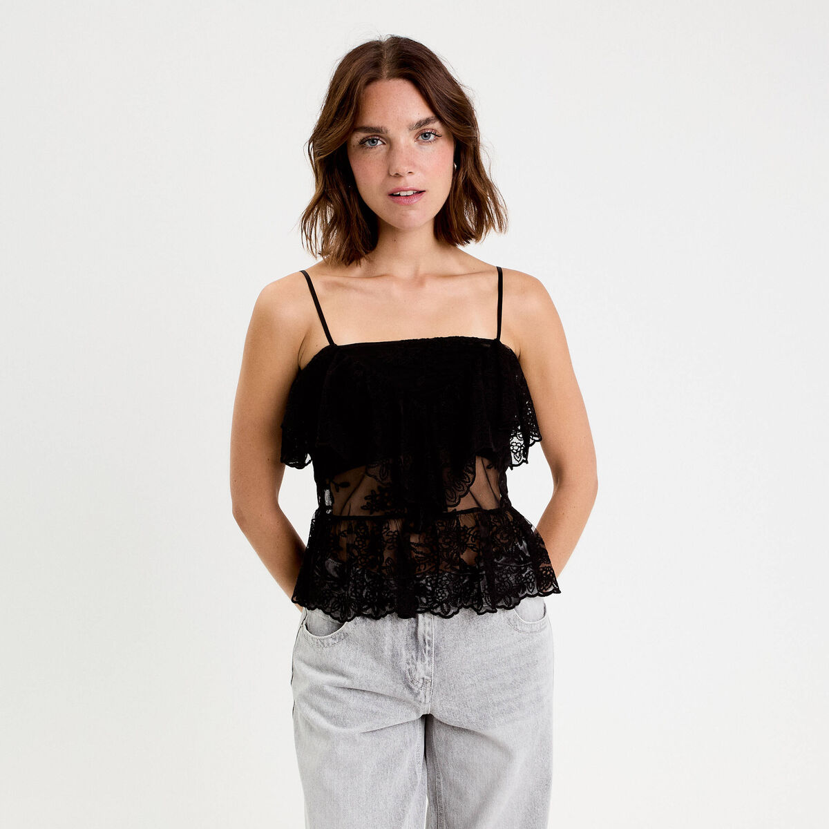 Débardeur dentelle noir femme