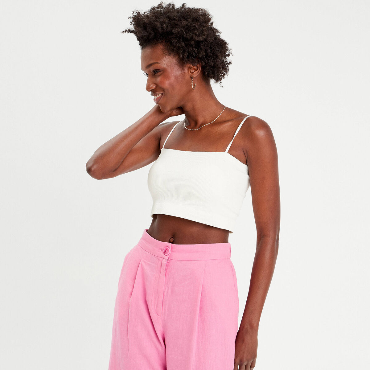 Débardeur tricot cropped blanc femme
