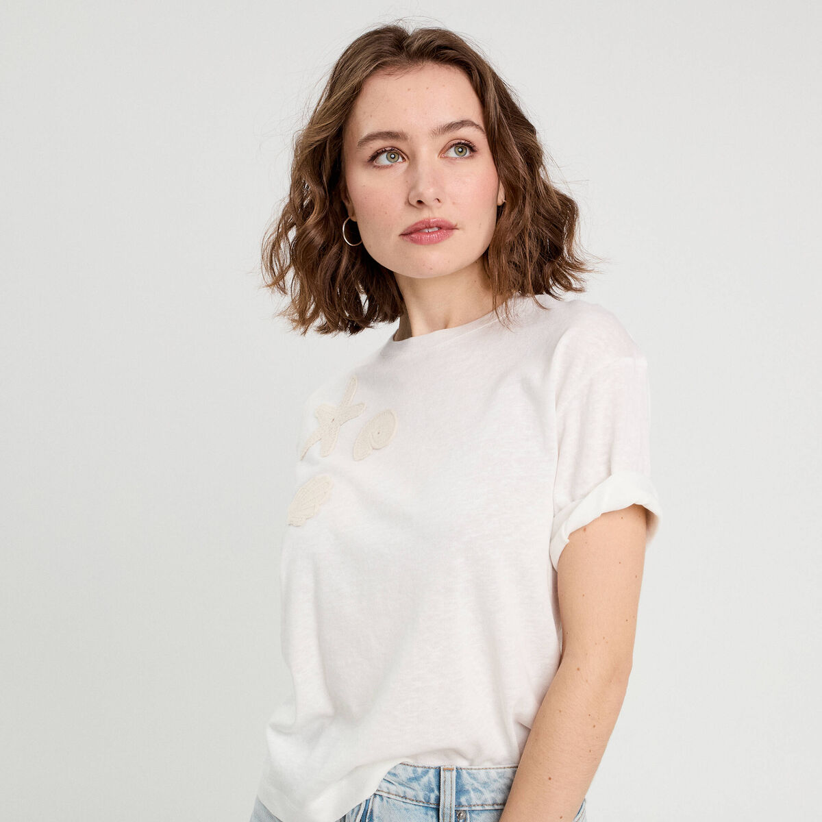 T-shirt manches courtes ecru femme