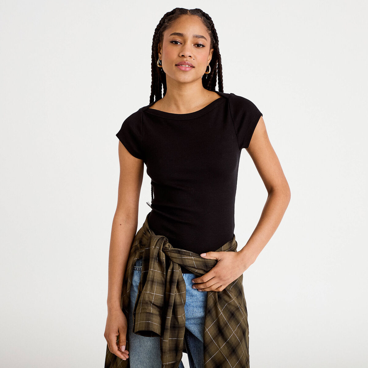T-shirt cintré manches courtes noir femme