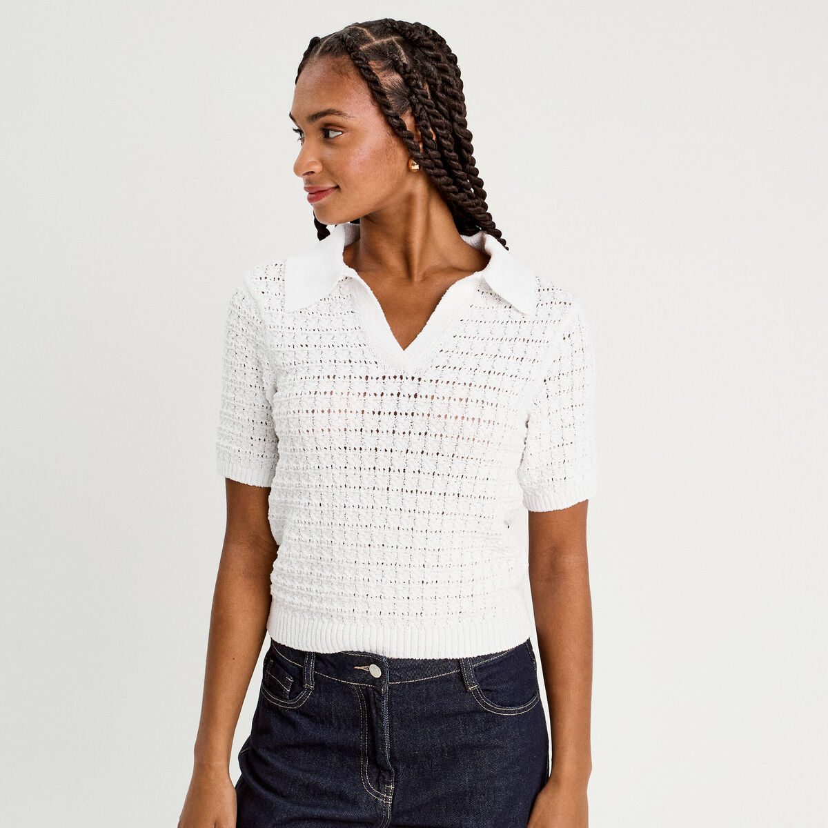 Polo manches courtes ajouré blanc femme