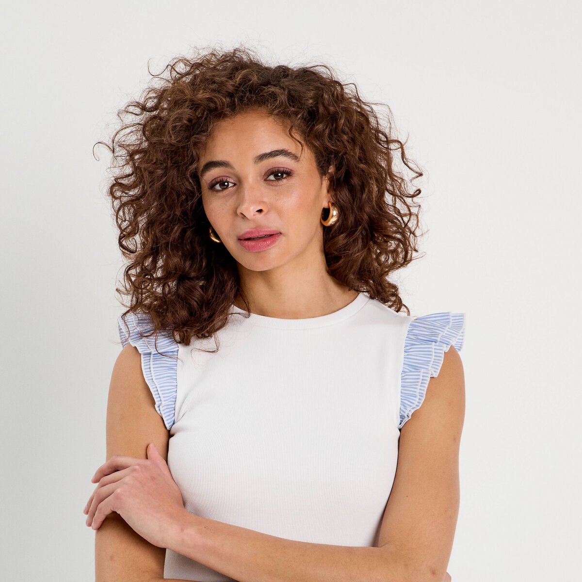 Débardeur volants épaules blanc femme